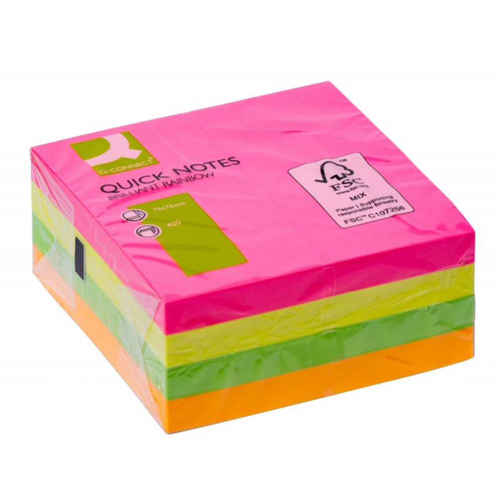 Мемо блок, 76*76мм, 400 ливчиња, PBS, Q-Connect, KF10497, 4х неон микс