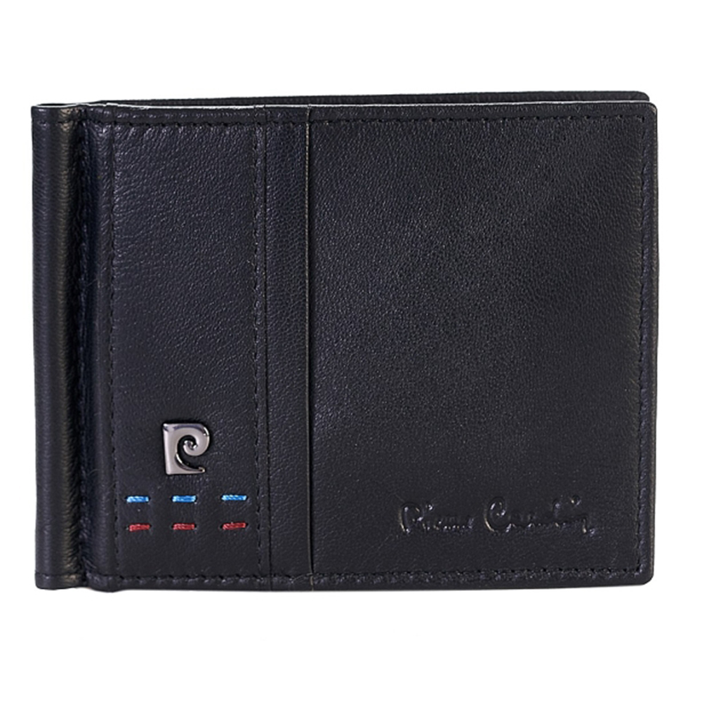 Паричник Pierre Cardin со штипка за пари е направен од вештачка кожа. Паричникот има врежано метално лого, слотови за картички и вклучено е една кутија.
