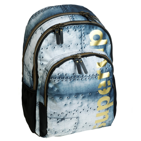 Школски ранец со 3 патенти, има 2 големи прегради за книги, папки, тетратки, а во едната има можност за носење на лаптоп, исто така има преден среден џеб со патент. Должината на ремените се прилагодуваат. Долниот дел на ранецот е дополнително поставен за да ја издржи тежината од содржината во ранецот. Надворешноста е изработена од 100% полиестер водоотпорен, а внатрешната постава од 100% полиестер. Ранецот е во сина боја.